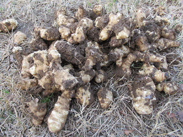冬は、キクイモをバケツ1杯ずつくらい、分けて収穫します。