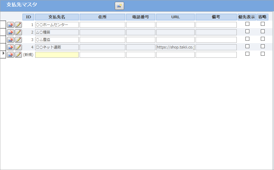 □優先表示をチェックすると、防除計画で農薬を選択する際に、上位に表示されます。